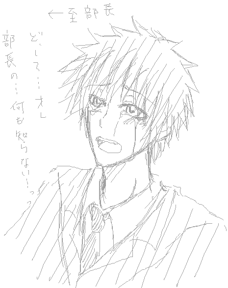 ちなみに絵はその絵茶の途中で人事部の部長が無理するので大泣きしたカズ。